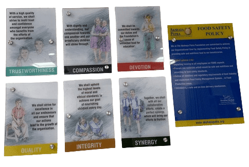 - Sunboard Sheet with Founder's Message: Inspirational message inside the kitchen, fostering motivation among staff.