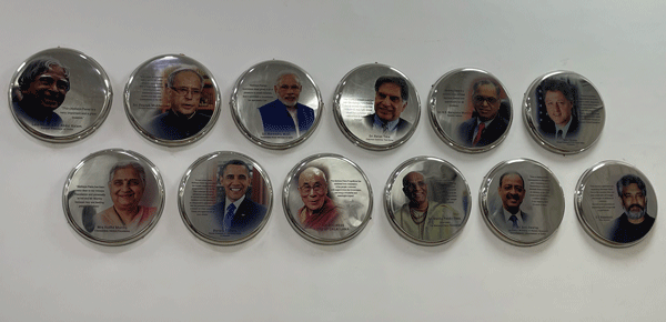 - Stainless steel plates with UV-printed dignitary messages.