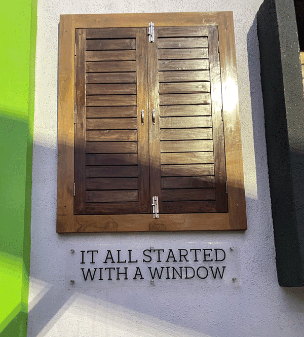 - Wooden window displaying Prabhu's vision.